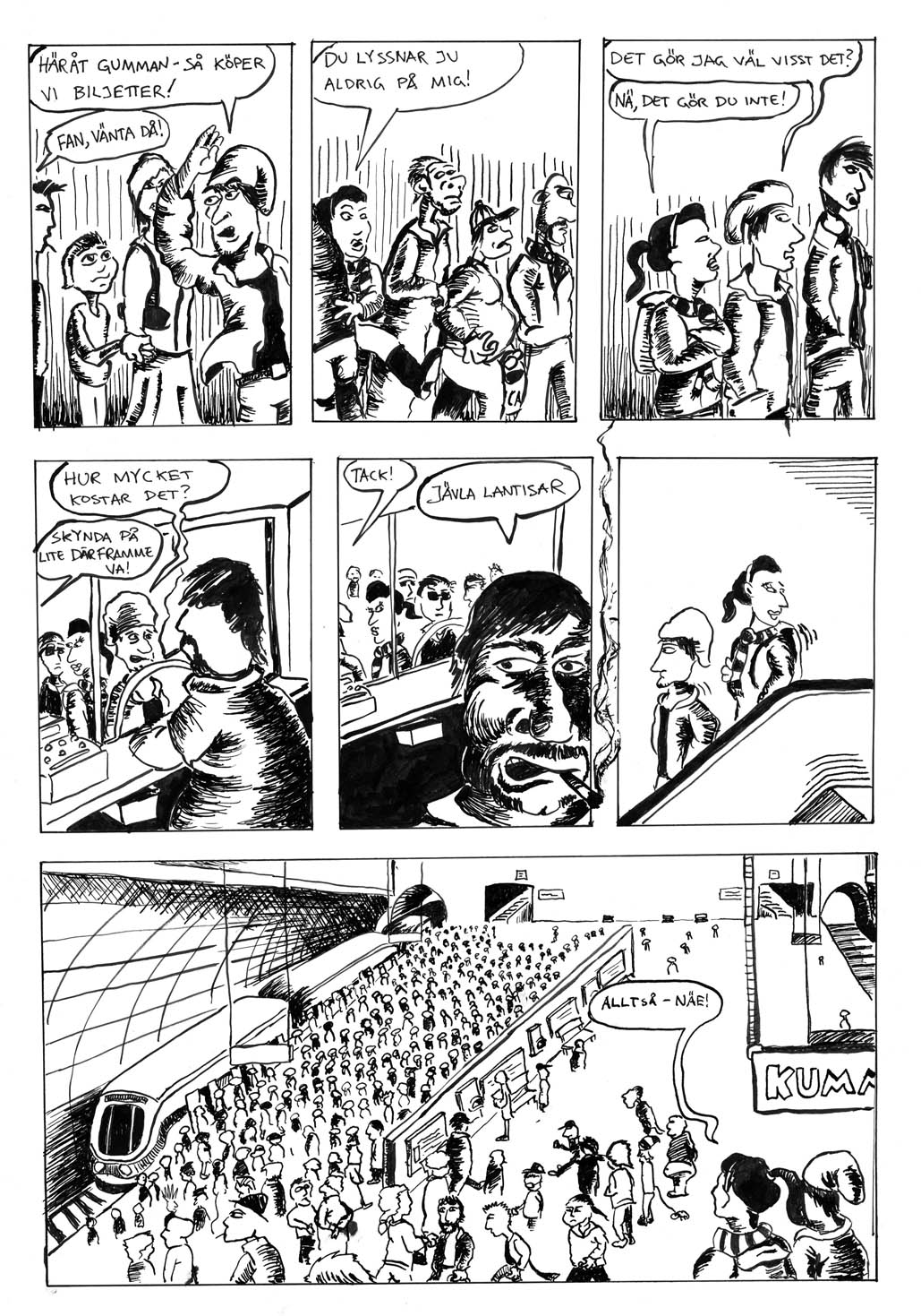 Men visst, den här ligger mig varmt om hjärtat - för jävlar vad jag slet för att få färdigt den här stackars pjäsen på ynka nio sidor! Det märks när man utvecklats, både färdighetsmässigt och snabbhetsmässigt. Så, här är iaf den första längre serie jag gjorde på SoB.